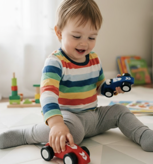 - Imitación y lenguaje: El clásico "brrum brrum" y los sonidos de motor estimulan su balbuceo y primeras palabras.