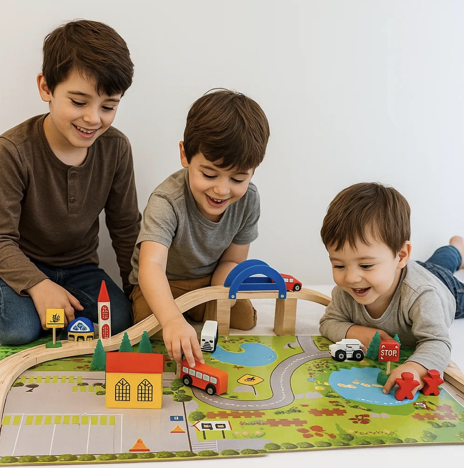 - De 3 a 4 años: Juego guiado. Arman la pista con ayuda y disfrutan del juego simbólico básico (hacer "ruum ruum").
