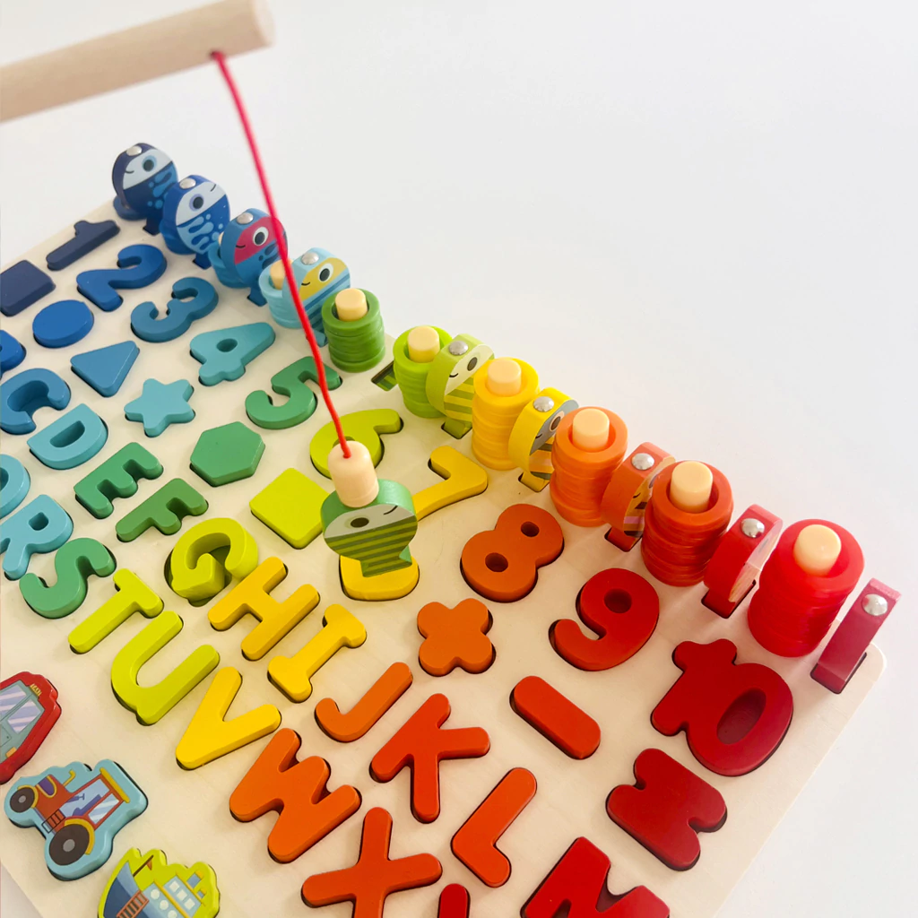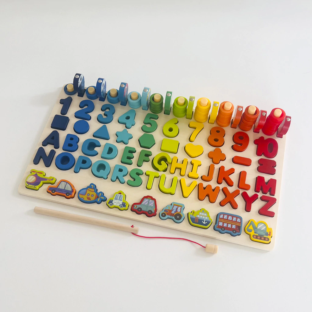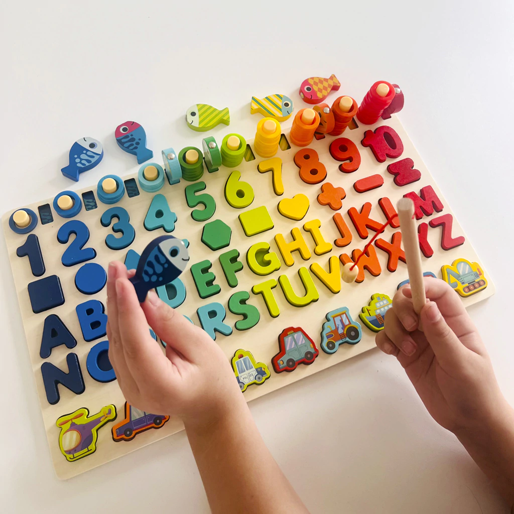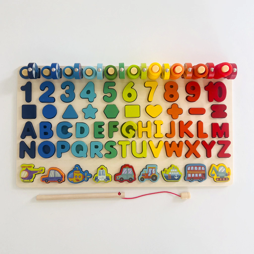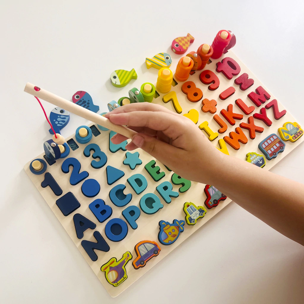 Completo: Incluye abecedario completo, números, formas geométricas, 10 peces magnéticos y 2 varitas pescadoras.