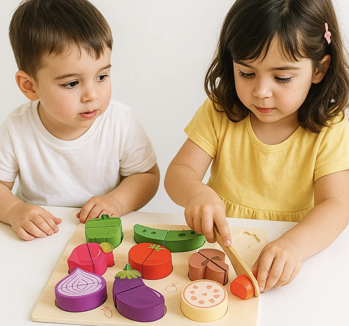 Motricidad fina de chef: Cortar y unir las verduras entrena la pinza digital, la fuerza y coordinación para escribir y dibujar.